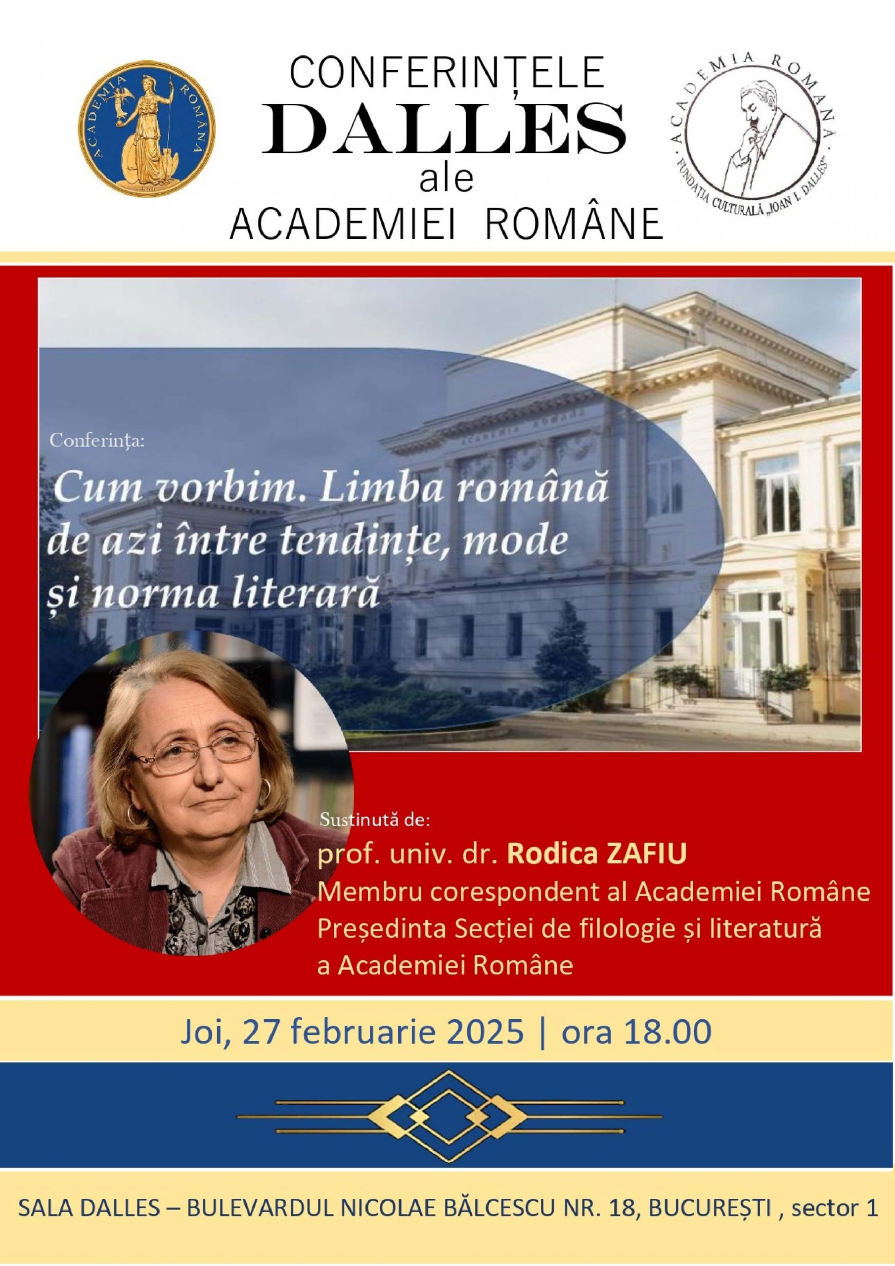 Conferință susținută de prof. univ. dr. Rodica Zafiu, membru corespondent al Academiei Române, președinta Secției de filologie și literatură a Academiei Române.