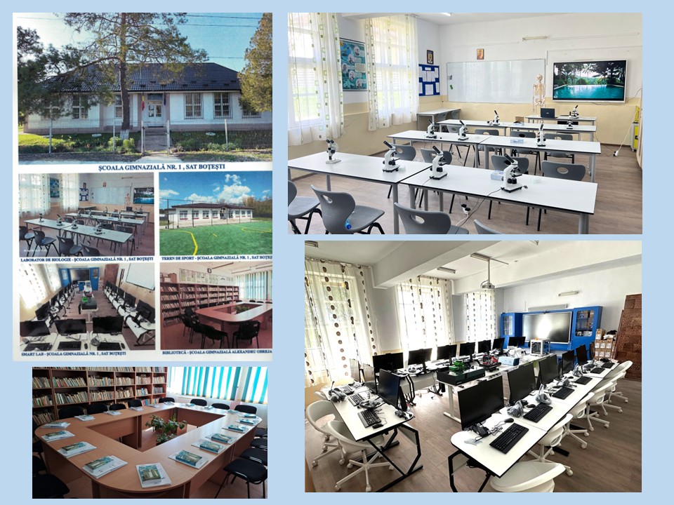 Este o comună unde primarul, Pantea Adrian, prezent la acest eveniment, pune accent pe educarea copiilor, a tinerei generații și ajută școala prin diverse mijloace. Demonstrând implicarea sa în rezolvarea problemelor comunității, prin Programul Operațional Competitivitate 2014-2020, în cadrul proiectului „Achiziție de tablete școlare și alte echipamente necesare desfășurării activității didactice on-line”, inițiat de Primăria Boțești, Școala Boțești a fost dotată cu 15 tablete interactive, 15 laptop-uri, 15 videoproiectoare, 15 camere web, 15 sisteme audio și 18 tablete pentru elevi. O școală modernă într-un sat, undeva în Moldova: 13 clase dotate cu table interactive și retroproiectoare, laborator de informatică și de biologie, cabinet de consiliere. Deosebit de interesant mi s-a părut un laborator digital inteligent – SmartLab dotat, de curând, cu 16 calculatoare de ultimă generație, cu echipament de gravat și presă tehnică,  tablă interactivă, imprimante 3D, multifuncțional A3 COLOR, scannere 3D, ochelari de realitate virtuală, creioane 3D, hologramă, sistem de sonorizare, sistem de supraveghere video 3D şi roboţi educaționali multifuncționali. Elevii învață folosindu-se de toate acestea. Am aflat, de la secretarul școlii, că acest laborator, oferă acces tuturor elevilor la educație digitală inteligentă. Cu multă mândrie și responsabilitate, a arătat cum funcționează o parte din ele. E uimitor ce pot să facă! Echipamentele din laborator și softurile aferente pot fi folosite în predarea oricărei materii. Într-un alt spațiu al laboratorului se află un sistem hydroponic SMART, în care elevii pot crește diverse plante. Învățarea devine o activitate agreabilă, pragmatică, prietenoasă, diferită. Cu siguranță lecțiile vor fi fascinante. Amenajarea acestui SmartLab s-a realizat prin PNRR (Planul Național de Redresare și Reziliență). Școala Gimnazială nr.1 sat Boțești implementează  în calitate de beneficiar, proiectul PNRAS cu titlul „Școala o poartă deschisă spre viață. Spune NU abandonului școlar!”.