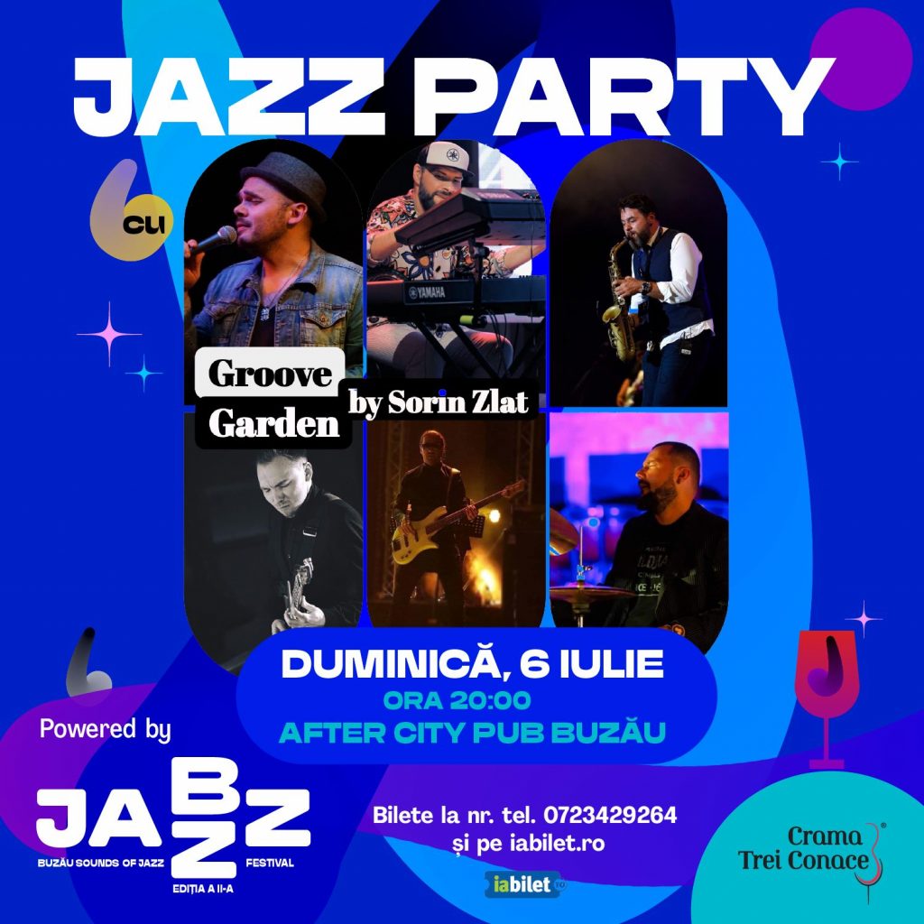 Experiența de jazz este completată de un super Jazz Party Powered by Buzău Sounds of Jazz Festival, duminică, 6 iulie, de la ora 20.00, unde band-ul Groove Garden by Sorin Zlat va transforma jazz-ul în energie, distracție și relaxare. Evenimentul are loc la After City Pub Buzău. Accesul se face pe bază de bilet.