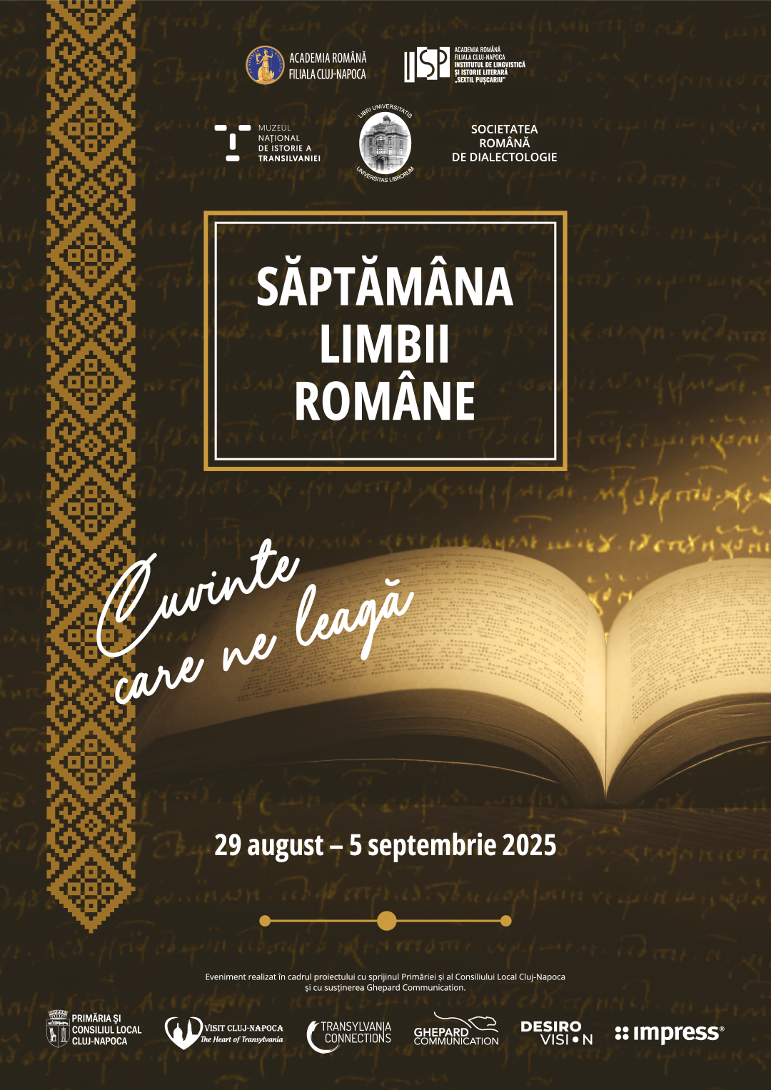 Institutul de Lingvistică și Istorie Literară „Sextil Pușcariu” al Academiei Române, Filiala Cluj-Napoca, are plăcerea de a vă invita la o serie de activități culturale, academice și educaționale, înscrise sub egida: Săptămâna limbii române, un proiect dedicat celebrării și promovării limbii române, care se va desfășura între 29 august și 5 septembrie 2025.