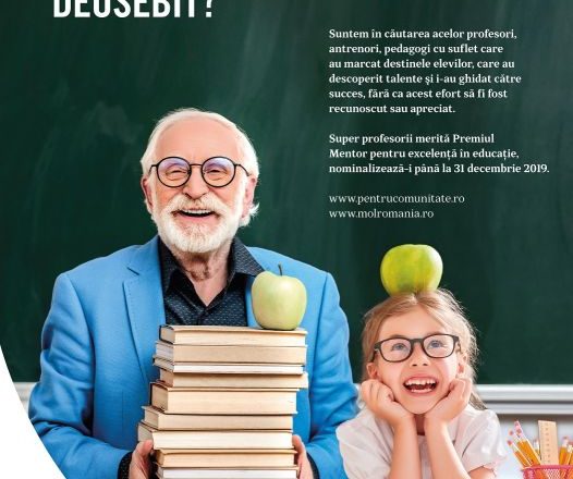 Premiul Mentor pentru excelență în educațieUltima lună pentru depunerea nominalizărilor Premiem anual zece profesori și antrenori care au avut un rol important în viața discipolilor, în viața tinerilor, premiul constând dintr-un trofeu realizat de apreciatul artist Ioan Nemțoi, și o sumă în valoare de 8.000 de lei.Nominalizările se trimit online până în 31 decembrie 2019.Detalii