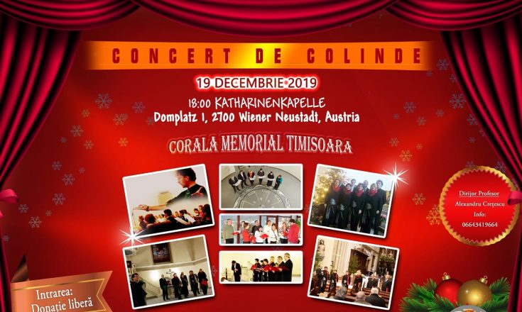 COMUNICAT Corala Memorial din Timișoara vine din nou în mijlocul comunității noastre din Wiener Neustadt pentru a ne încânta cu un recital de colinde românești.Prof. Alexandru Crețescu, dirijorul acestui grup minunat de interpreți a pregătit un repertoriu bogat care să ne aducă bucurie și vestirea Sfintelor Sărbători ale Nașterii Mântuitorului. Așadar vă invităm cu drag să