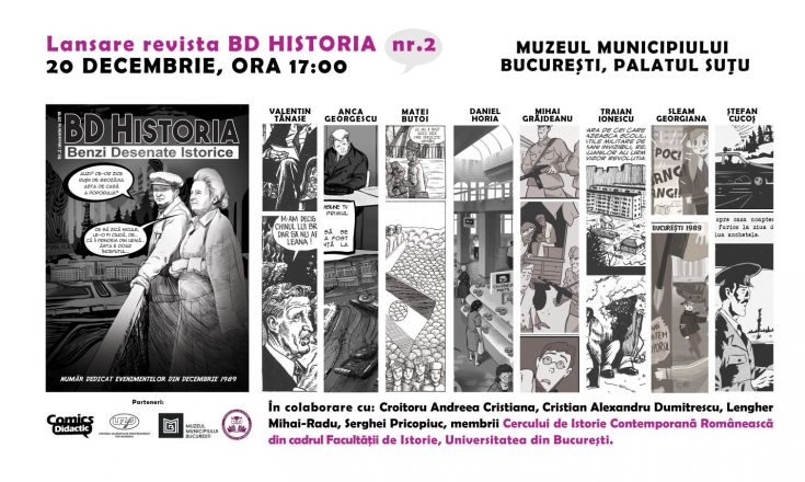 Azi, 20 decembrie 2019, a avut loc lansarea nr. 2 al revistei BD Historia – benzi desenate istorice, numar dedicat evenimentelor din decembrie 1989, la Palatul Sutu – sediul Muzeului Municipiului Bucuresti.Multumim Marius Tita pentru prezentarea facuta. Multumim tinerilor artisti care si-au prezentat plansele in original. Au fost prezenti artisti consacrati de banda desenata si