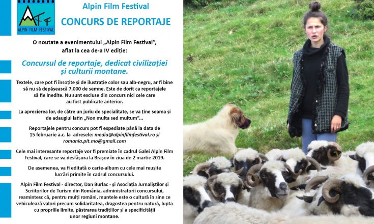COMUNICAT Alpin Film Festival CONCURS DE REPORTAJE O noutate a evenimentului „Alpin Film Festival”, aflat la cea de-a IV ediție: Concursul de reportaje, dedicat civilizației și culturii montane.