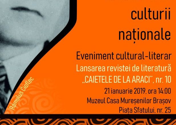 Muzeul „Casa Mureșenilor” Brașov, instituție publică de interes județean, care funcționează sub autoritatea Consiliului Județean Brașov, în colaborare cu Muzeul Național al Carpaților Răsăriteni din Sfântul Gheorghe și Casa Memorială „Romulus Cioflec” Araci organizează luni, 21 ianuarie 2019, ora 14 la sediul muzeului din Piața Sfatului nr. 25evenimentul cultural-literar „Sub semnul culturii naționale”.