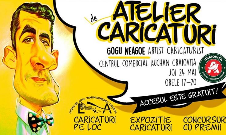Comunicat Atelierul de caricaturi este un eveniment ce va avea loc in Craiova. Va invitam joi 24 mai de la ora 17.00 la o dupa amiza dedicata caricaturii la Centrul Comercial Auchan Craiovita. Tineri de la Liceul de Arta Marin Sorescu vor expune lucrari de caricature; vom incuraja tinerii si copiii sa invete tainele caricaturii.