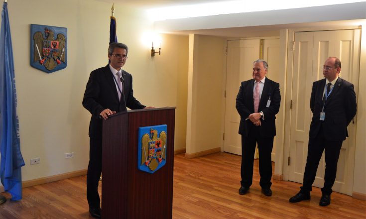 COMUNICAT DE PRESĂ Misiunea Permanentă a României la ONU a găzduit luni, 21 mai 2018, un eveniment de marcare a 70 de ani de la înființarea Comisiei de Drept Internațional a ONU, cu participarea președintelui CDI, Eduardo Valencia Ospina, și a profesorului Dr. Bogdan Aurescu, reprezentantul României în cadrul CDI.