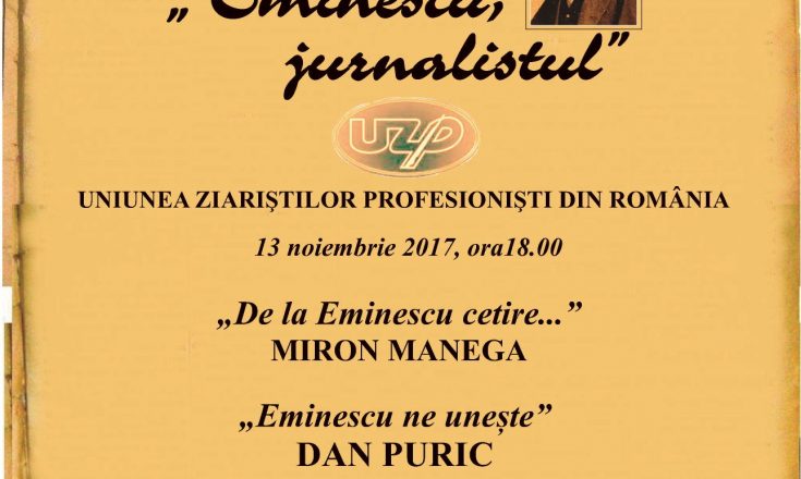 Comunicat de presa La Teatrul Nottara, din București, B-dul Gheorghe Magheru nr 20, sector 1, la data de 13 noiembrie a.c., orele 18.00, Uniunea Ziariștilor Profesioniști din România, în cadrul manifestărilor cultural-artistice consacrate Seratei „Eminescu Jurnalistul”, organizează un eveniment prin excelență dedicat artei teatrale și literaturii, cu actorii Claudia Motea și Dan Puric, moderator fiind
