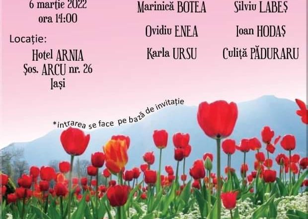 În pragul primăverii ieşene şi a zilei de 8 martie Pe 6 martie a avut loc „În pragul primăverii – Mărțișor 2022”, o manifestare culturală găzduită de Hotelul ARNIA și organizată de LSR – Filiala Iaşi-Nord Est. A fost frumos, mulțumim de participare şi implicare, iar evenimentul a fost dedicat şi doamnelor şi domnişoarelor din